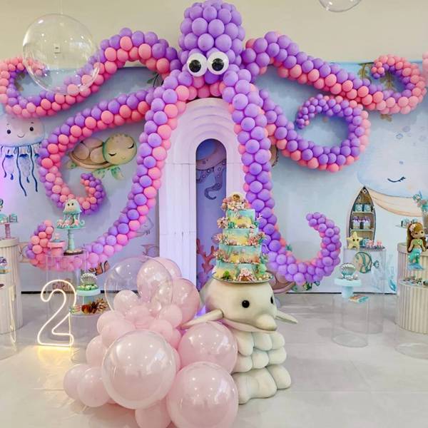 24. Acredite, é possível utilizar os balões de maneira bastante criatividade para criar variados formatos, incluindo animais. Abaixo, vemos isso sendo feito com o polvo.