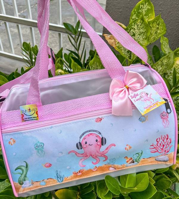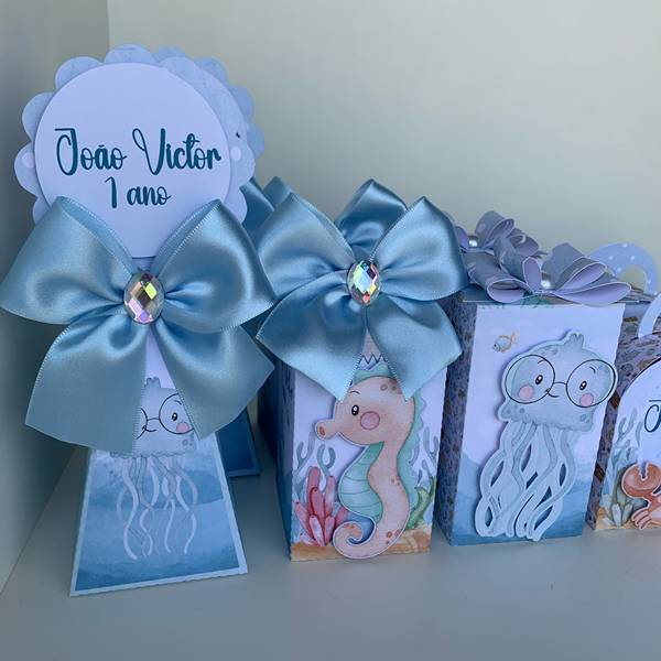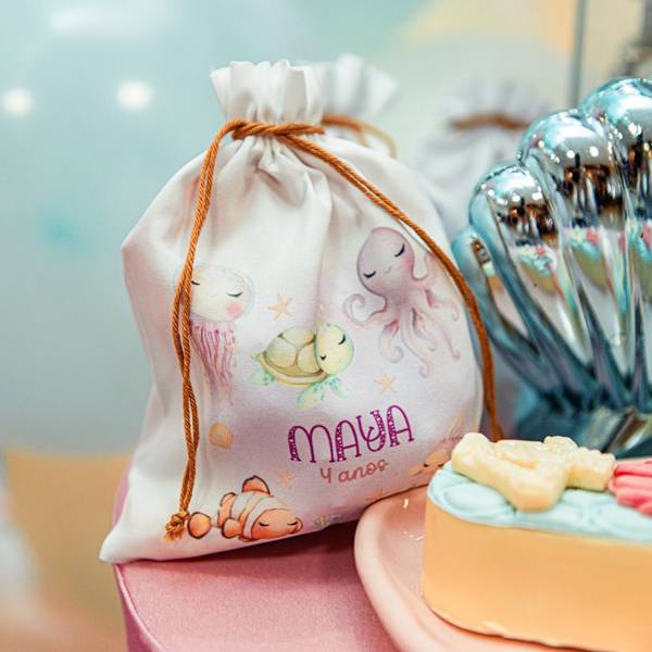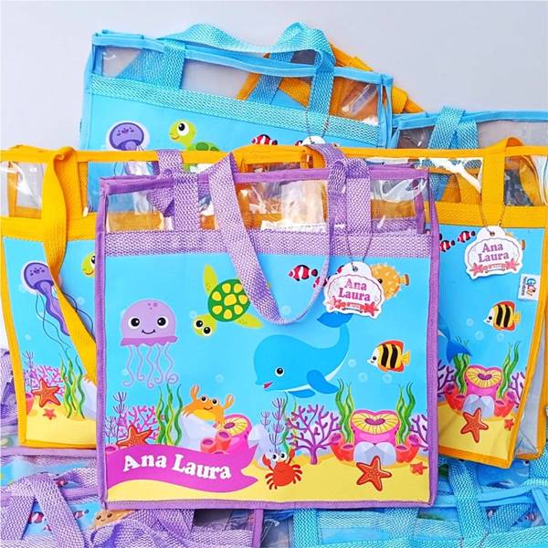 68. E nesse caso, as opções personalizadas são realmente encantadoras, a exemplo dessa sacolinha temática de fundo do mar, onde podem ser colocados doces.