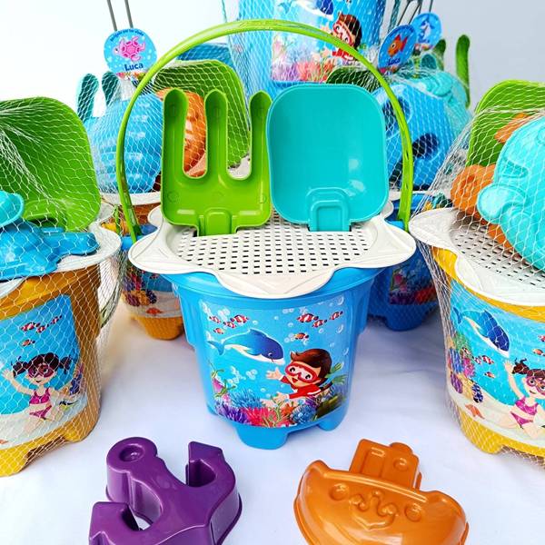72. Para que a lembrancinha também esteja conectada com o tema do aniversário, separamos como ideia esse kit com brinquedos de praia.