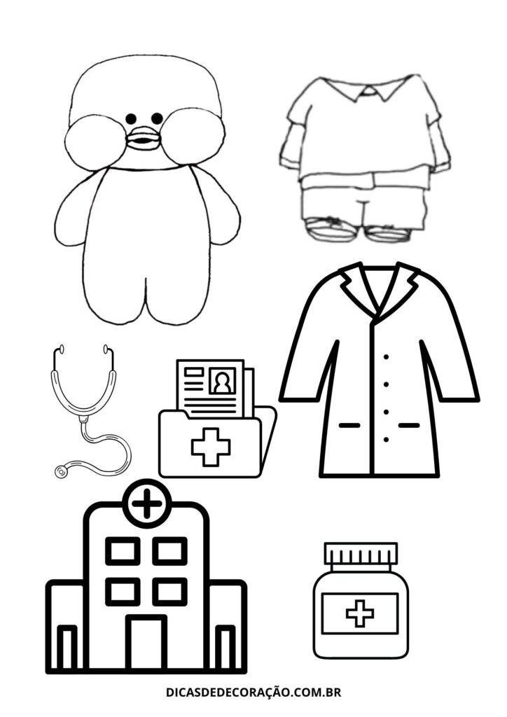 12. Essa versão traz o pato de papel médico, ótimo para conversar sobre cuidados com a saúde e familiarizar as crianças com jalecos, estetoscópios e consultórios.