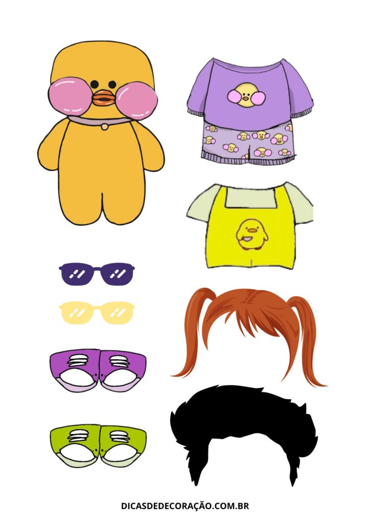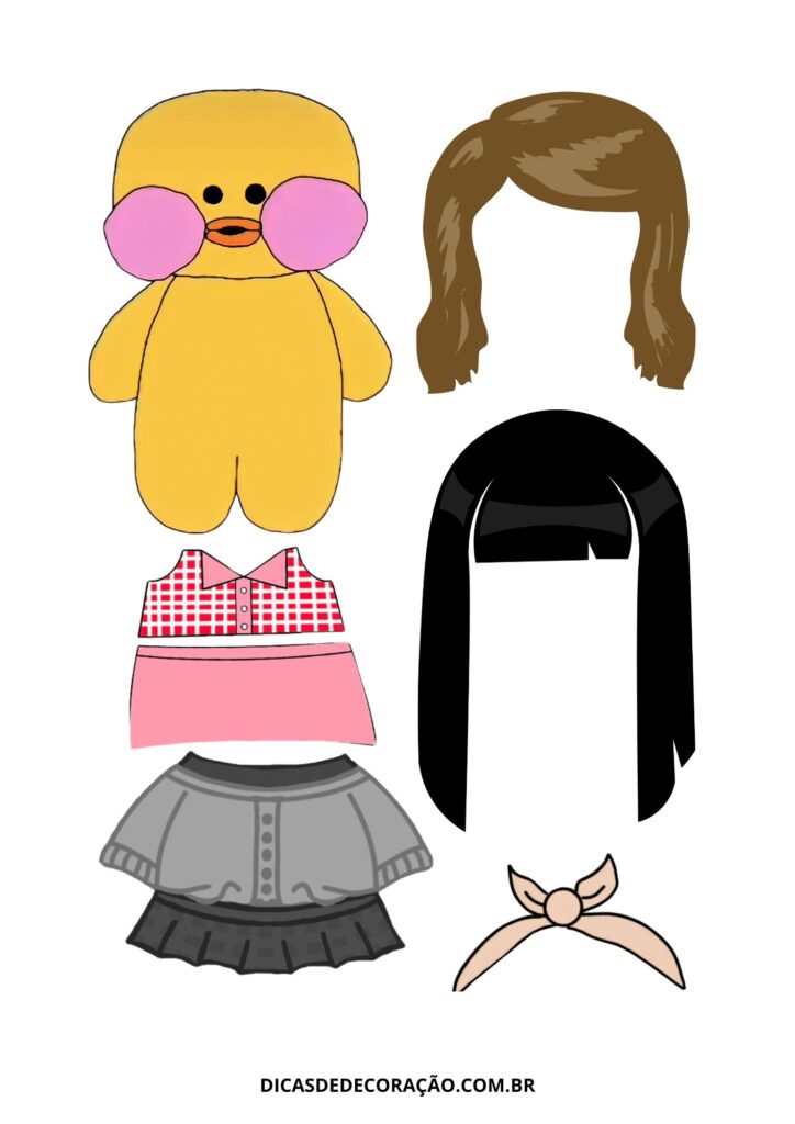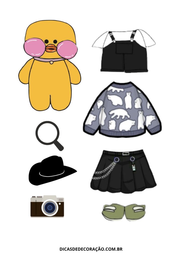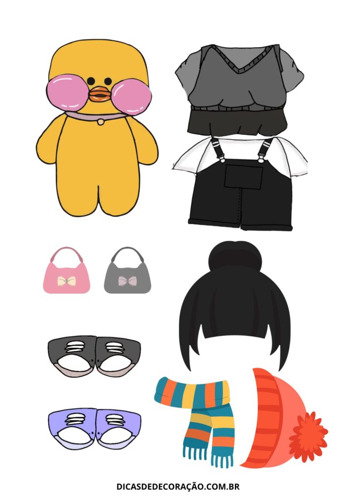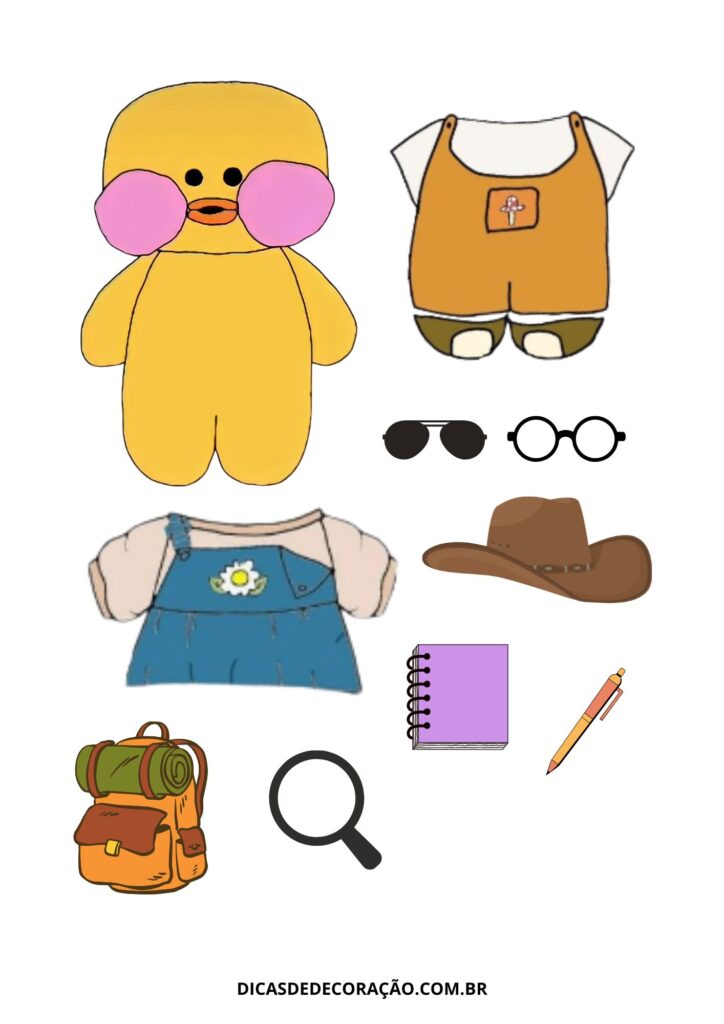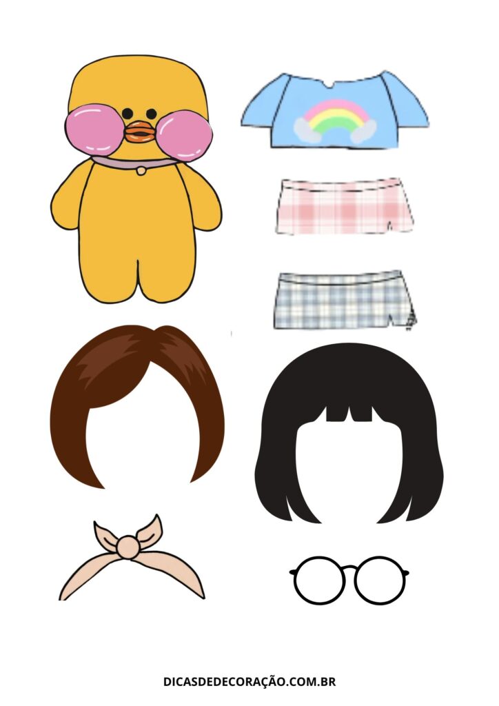 27. Com um kit variado de roupas e acessórios, essa versão do paper duck é perfeita para trabalhar a coordenação motora fina com recorte e montagem.