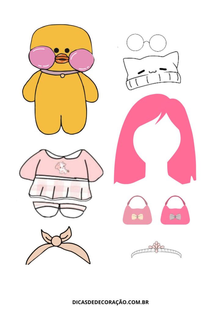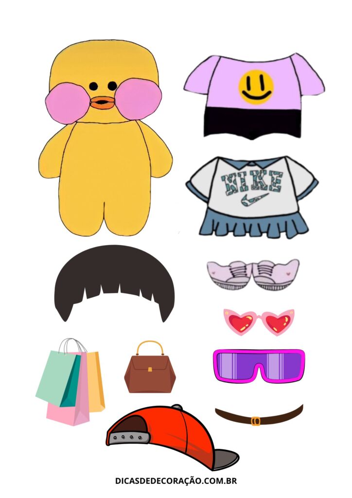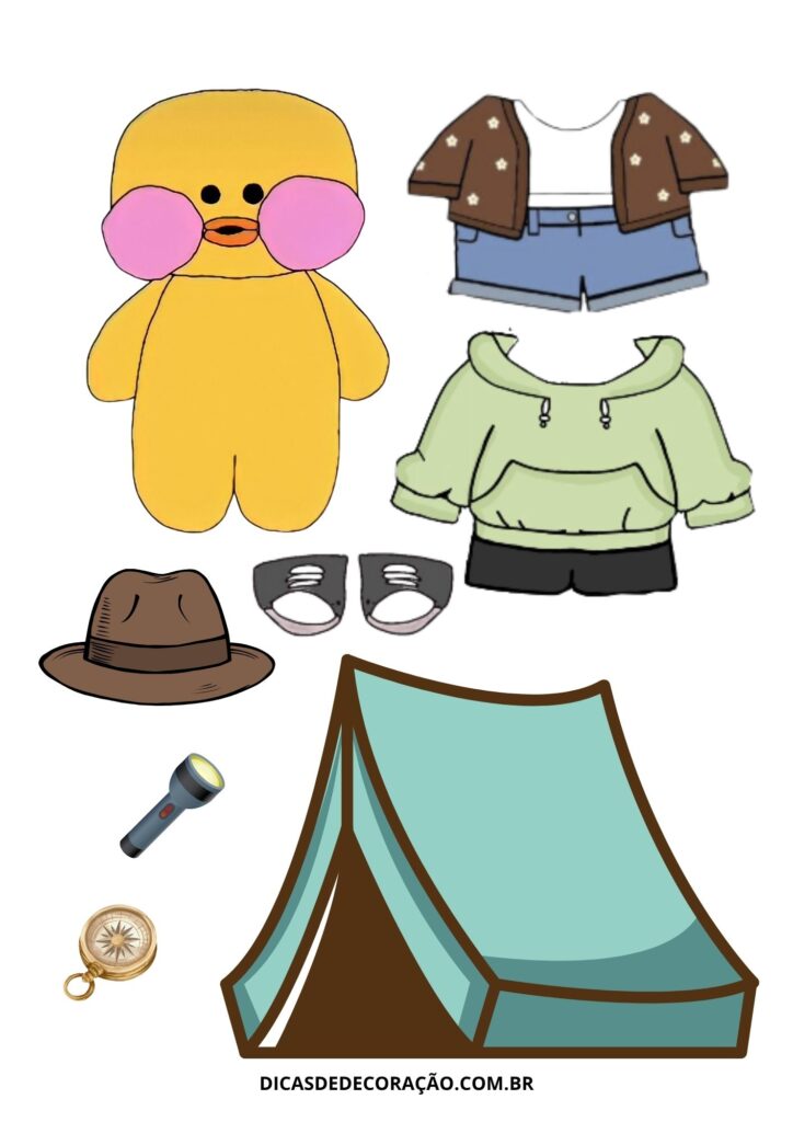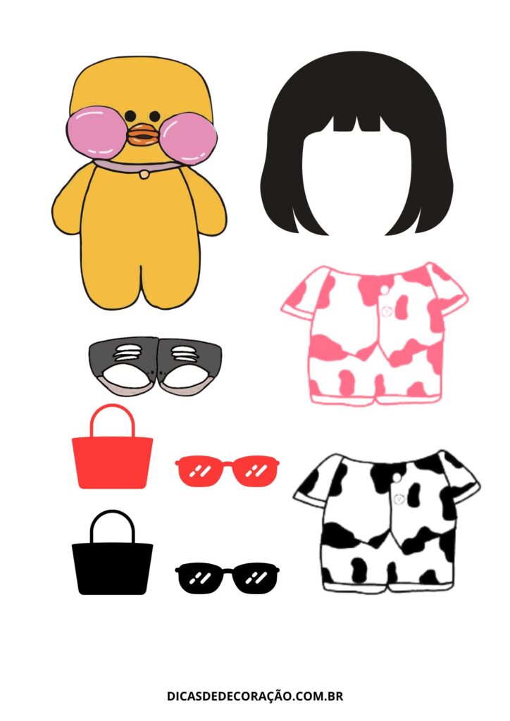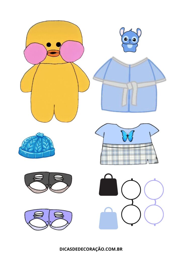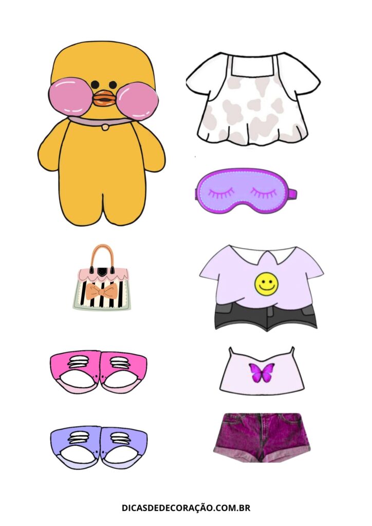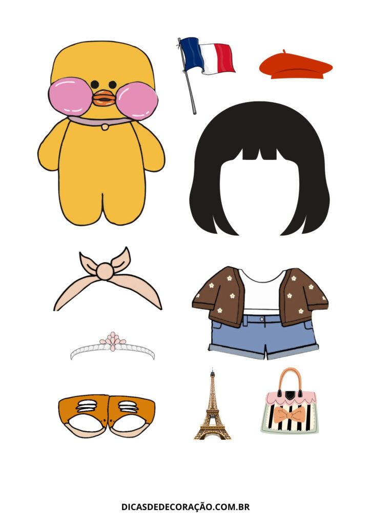 27. Com um kit variado de roupas e acessórios, essa versão do paper duck é perfeita para trabalhar a coordenação motora fina com recorte e montagem.