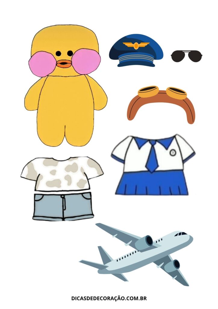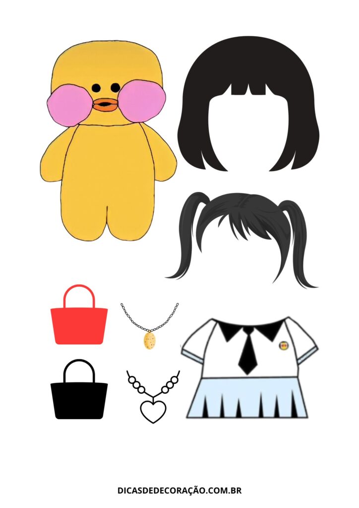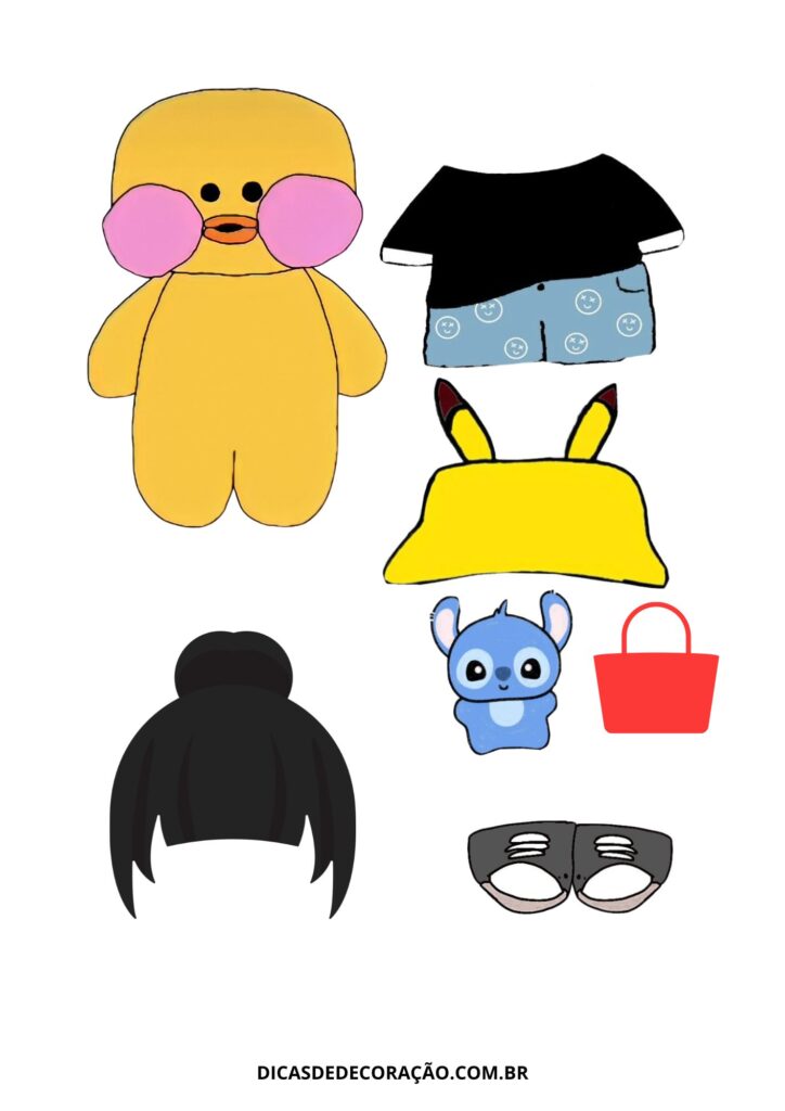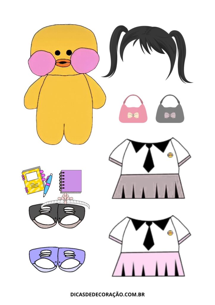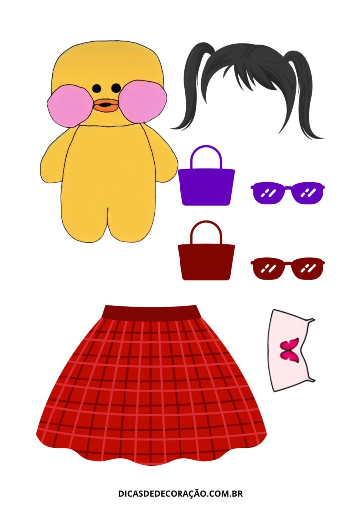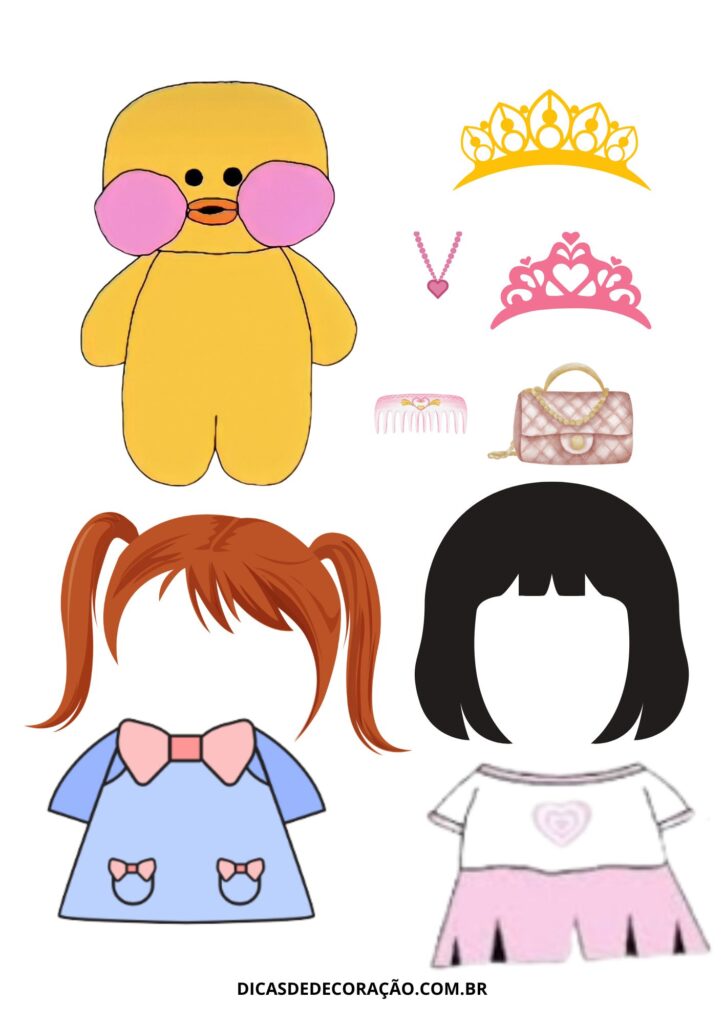 27. Com um kit variado de roupas e acessórios, essa versão do paper duck é perfeita para trabalhar a coordenação motora fina com recorte e montagem.