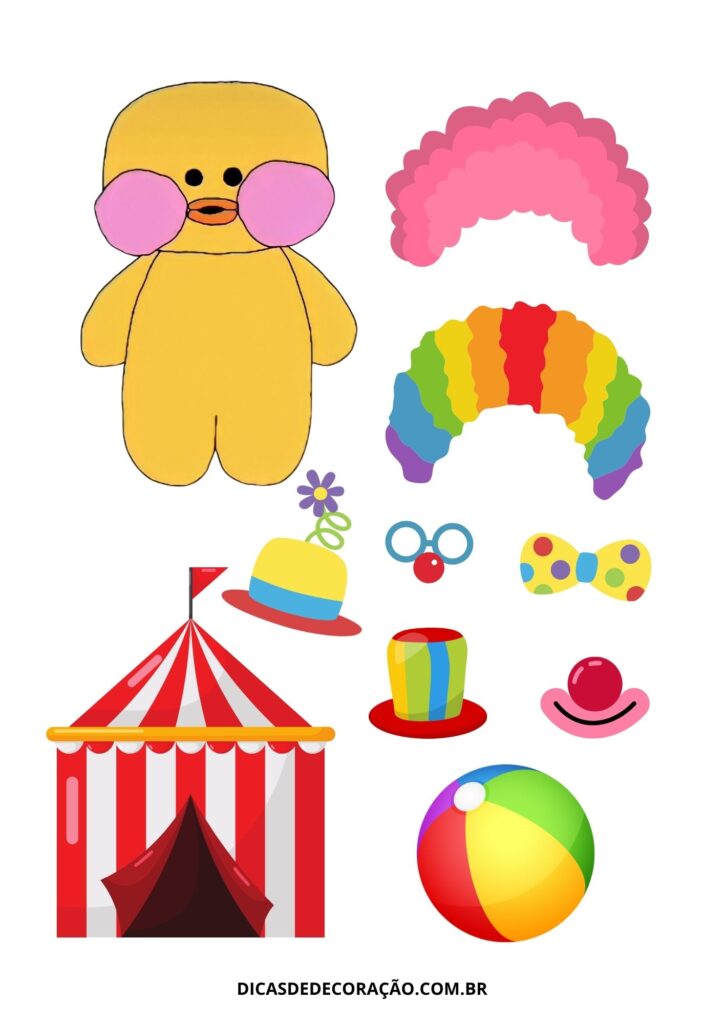 17. Roupas coloridas, apresentações e diversão com o pato no circo. Uma forma lúdica de abordar o universo circense com palhaços e muitas cores.