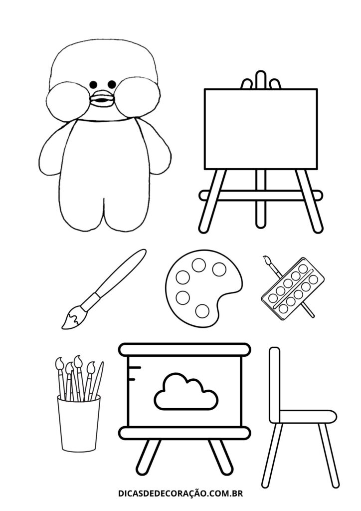 18. Pinturas, cores e muita arte com esse pato artista pintor. A proposta incentiva o lado criativo das crianças com pincéis e paletas de tinta.