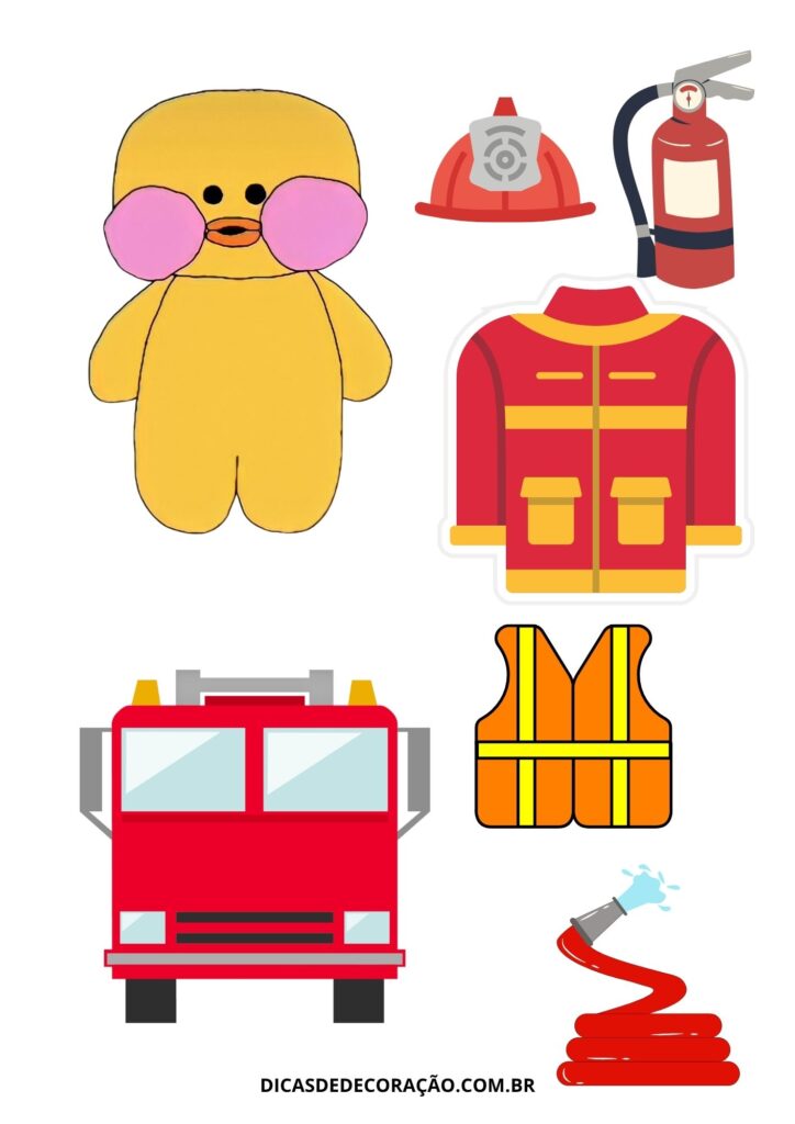 19. Um pato corajoso pronto para salvar o dia! Essa versão de bombeiro traz elementos que ajudam a falar sobre profissões com empatia e imaginação.