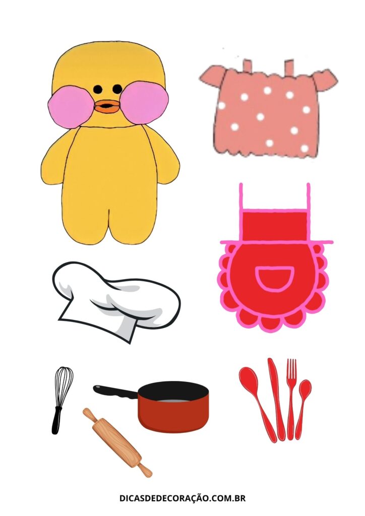 4. Uma brincadeira deliciosa: com esse pato chef de cozinha, as crianças podem montar receitas imaginárias e explorar o faz de conta na cozinha.